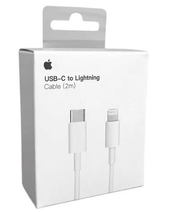 The Apple USB-C to Lightning Cable (2m) enables fast charging and data syncing for Lightning-equipped Apple devices, including iPhones, iPads, and AirPods. It connects to USB-C/Thunderbolt 3 (USB-C) chargers and ports, supporting Apple 18W to 96W adapters for high-speed charging. The 2-meter (6.6-foot) length is ideal for extended reach.
