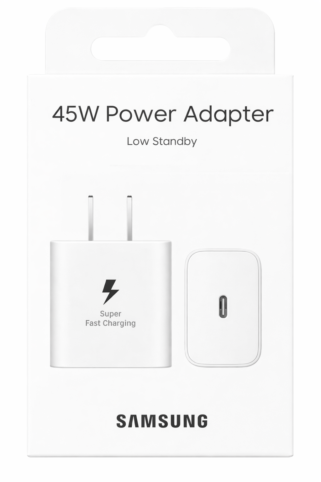 The Samsung 45W PD Power Adapter is a high-speed, USB-C wall charger designed for Samsung Galaxy devices, supporting Super Fast Charging (SFC) 2.0. It delivers up to 45W via Power Delivery 3.0 and PPS technology, enabling compatible phones to reach 65–70% charge in about 30 minutes.