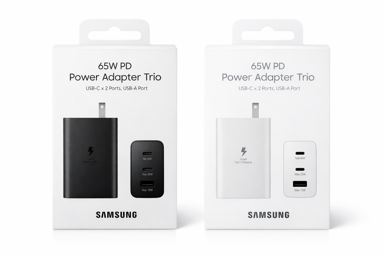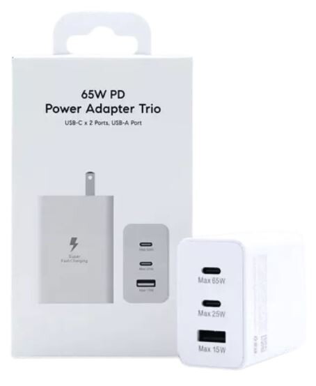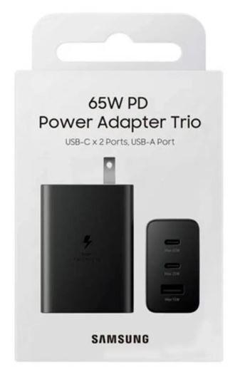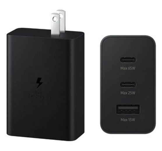 The Samsung 65W PD Power Adapter Trio (EP-T6530) is a versatile, compact wall charger capable of simultaneously powering up to three devices (two USB-C, one USB-A) with a total maximum output of 65W. It supports Super Fast Charging 2.0 (45W) for high-end devices, alongside 25W and 15W options, ensuring fast, safe, and stable charging for phones, tablets, and laptops.