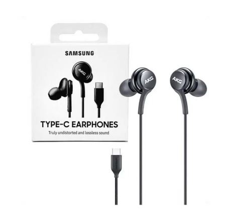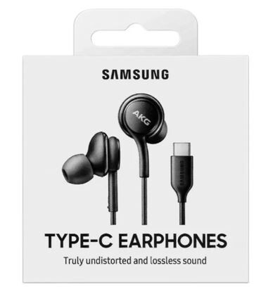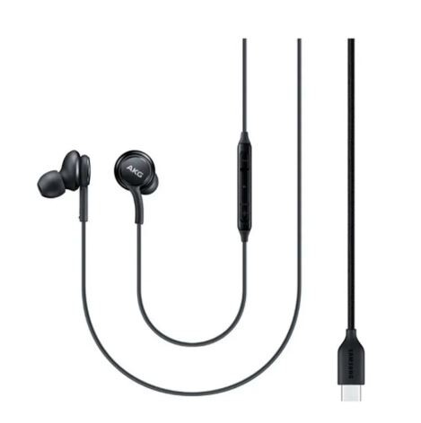 Samsung Type-C Earphones (EO-IC100) are wired, in-ear headphones tuned by AKG, featuring a 2-way speaker system (11mm/8mm) for balanced, high-resolution audio. They use a built-in DAC to enhance sound quality and provide 10x better left/right channel separation than 3.5mm headphones. The earbuds offer a durable braided cable, in-line controls, and a microphone.