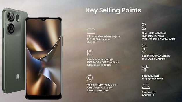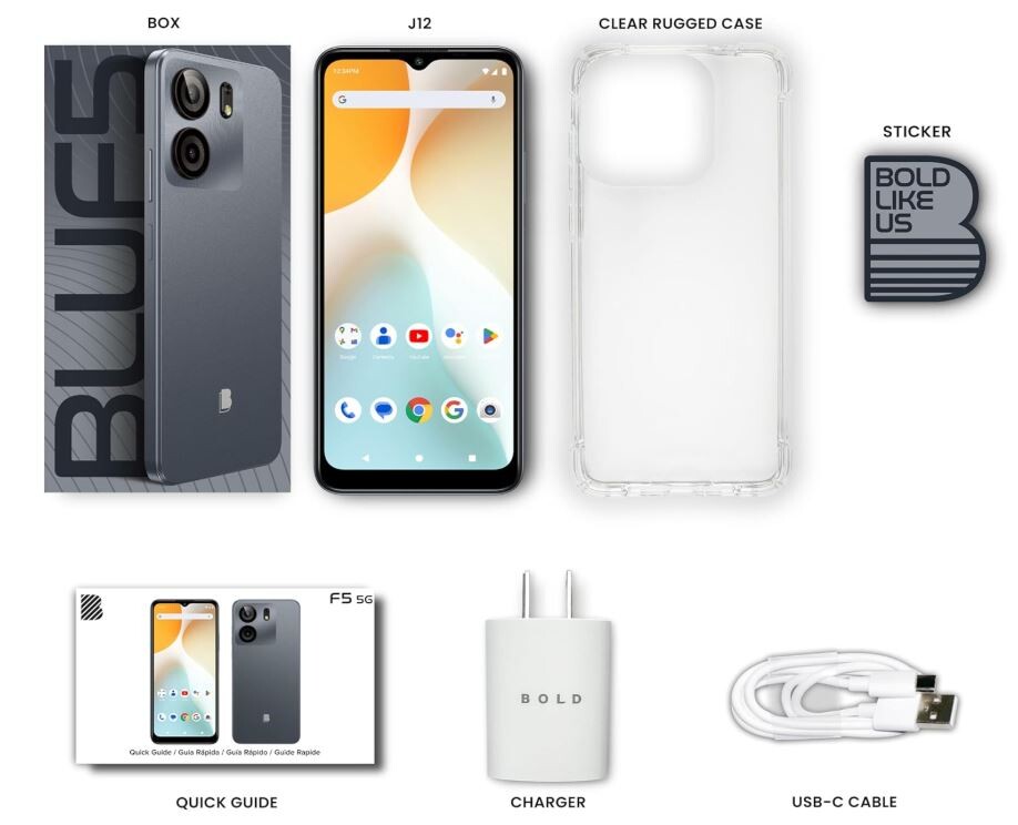 The BLU F5 is an budget-friendly, unlocked 5G smartphone featuring a 6.6-inch HD+ 90Hz display, MediaTek Dimensity 6100+ processor, 4GB RAM, and 128GB storage. It boasts a dual 50MP main camera, a 5,000mAh battery for long-lasting use, and Android 14, offering a competitive, high-value package.
