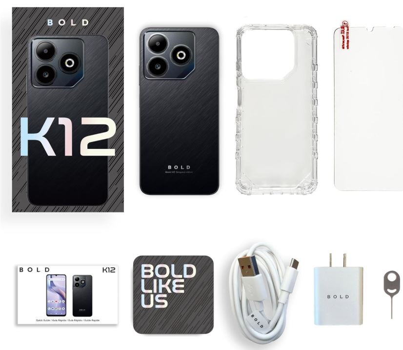 The BLU BOLD K12 (2025 model) is a budget-friendly, unlocked GSM smartphone designed for everyday use, featuring a large display and high-capacity battery. It is marketed as an affordable device for media consumption and basic daily tasks.