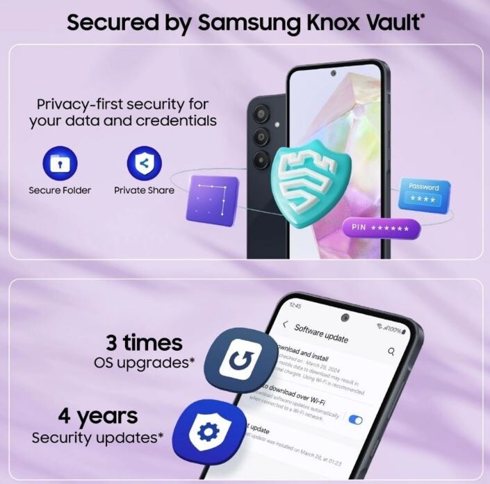 The Samsung Galaxy A35 5G is a mid-range smartphone featuring a 6.6-inch 120Hz Super AMOLED display, 50MP main camera with OIS, and a 5,000mAh battery, released in March 2024. It is powered by the Exynos 1380 chipset, features a premium glass-back design, and offers 25W fast charging.