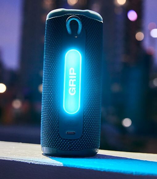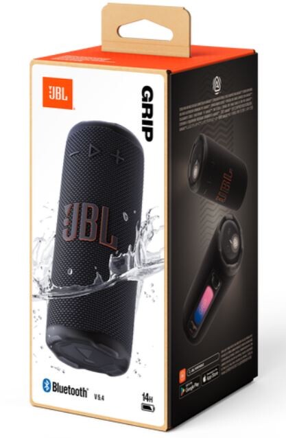 The JBL Grip is an ultra-portable, rugged Bluetooth speaker designed for grab-and-go use, featuring IP68 waterproof/dustproof protection, a drop-proof design, and up to 14 hours of playtime. It delivers 16W of punchy, "Pro Sound" with AI Sound Boost, featuring a built-in ambient light strip for added, customizable flair.